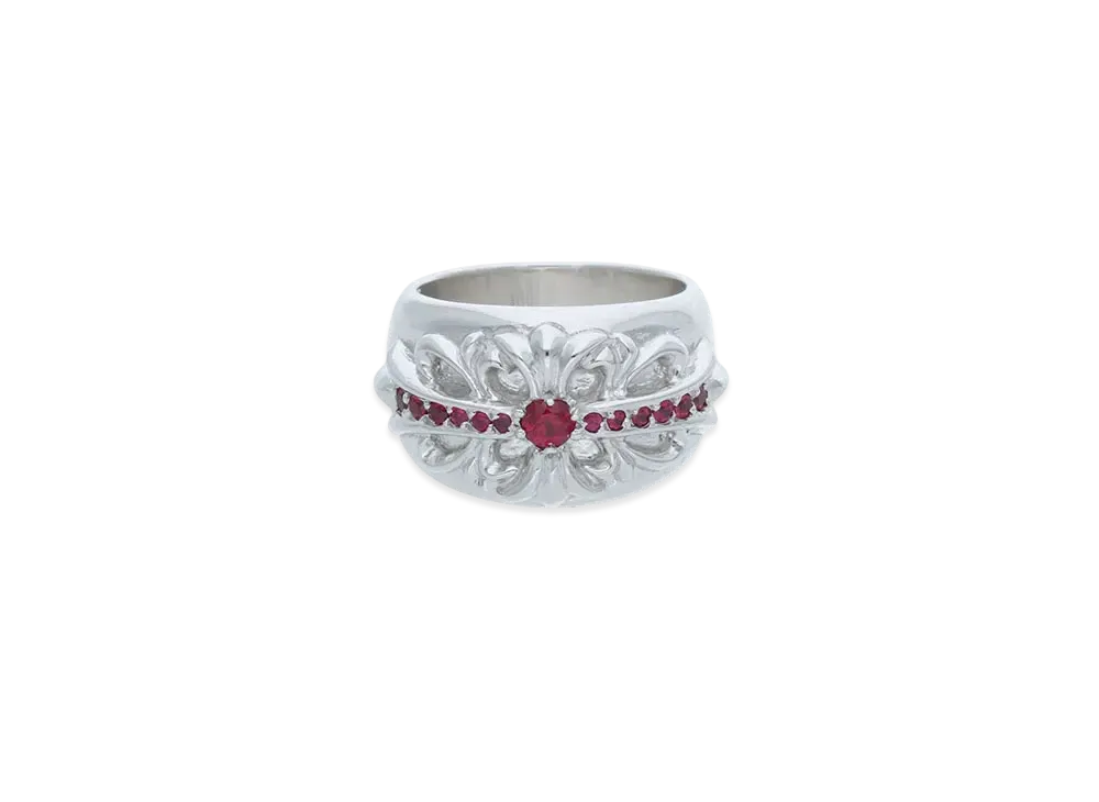Chrome Hearts 18K Floral Cross Pave Ruby Ring "White Gold"