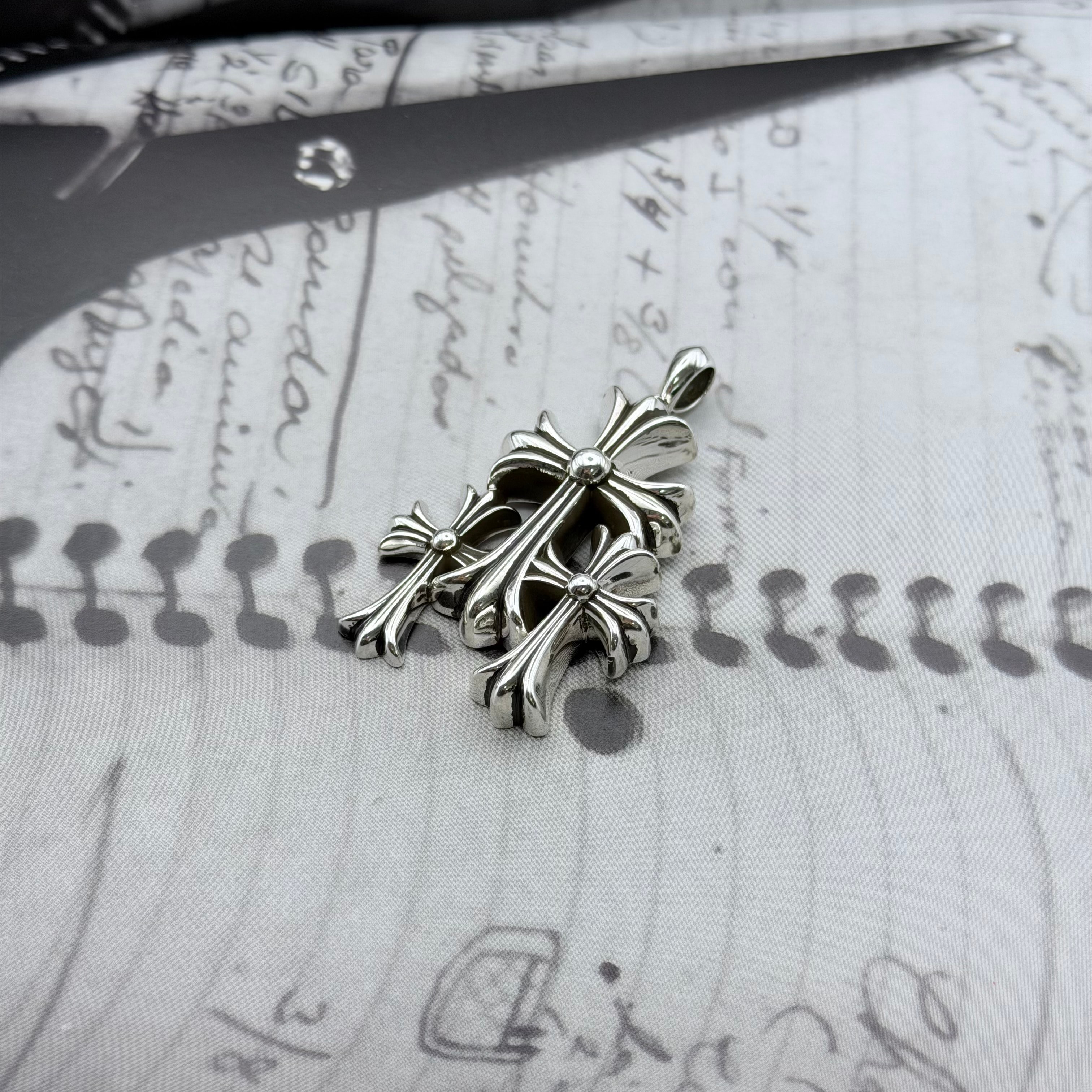 Chrome Hearts Small Triple CH Cross Pendant Top "Silver"