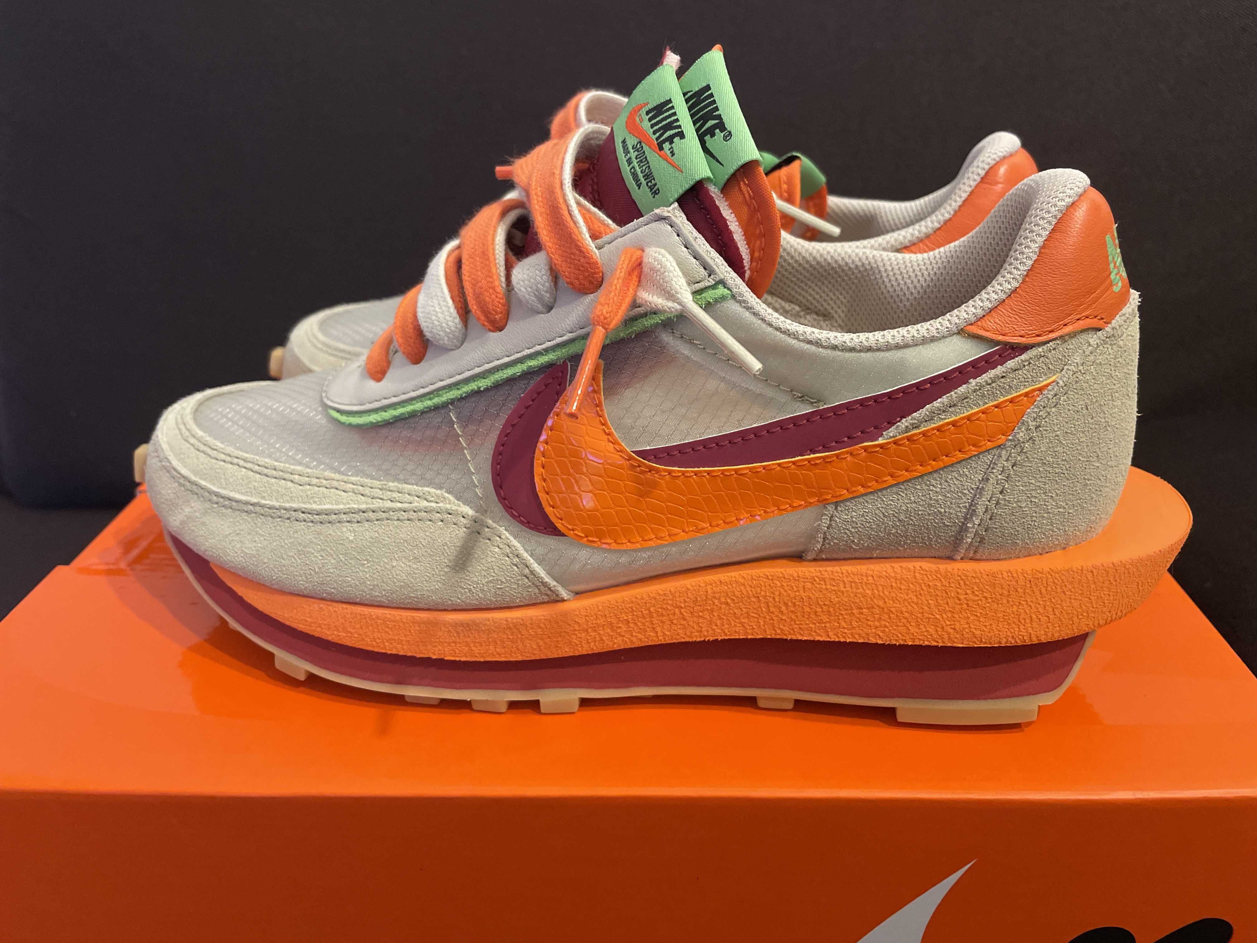CLOT × Sacai × Nike LD Waffle "Orange Blaze"