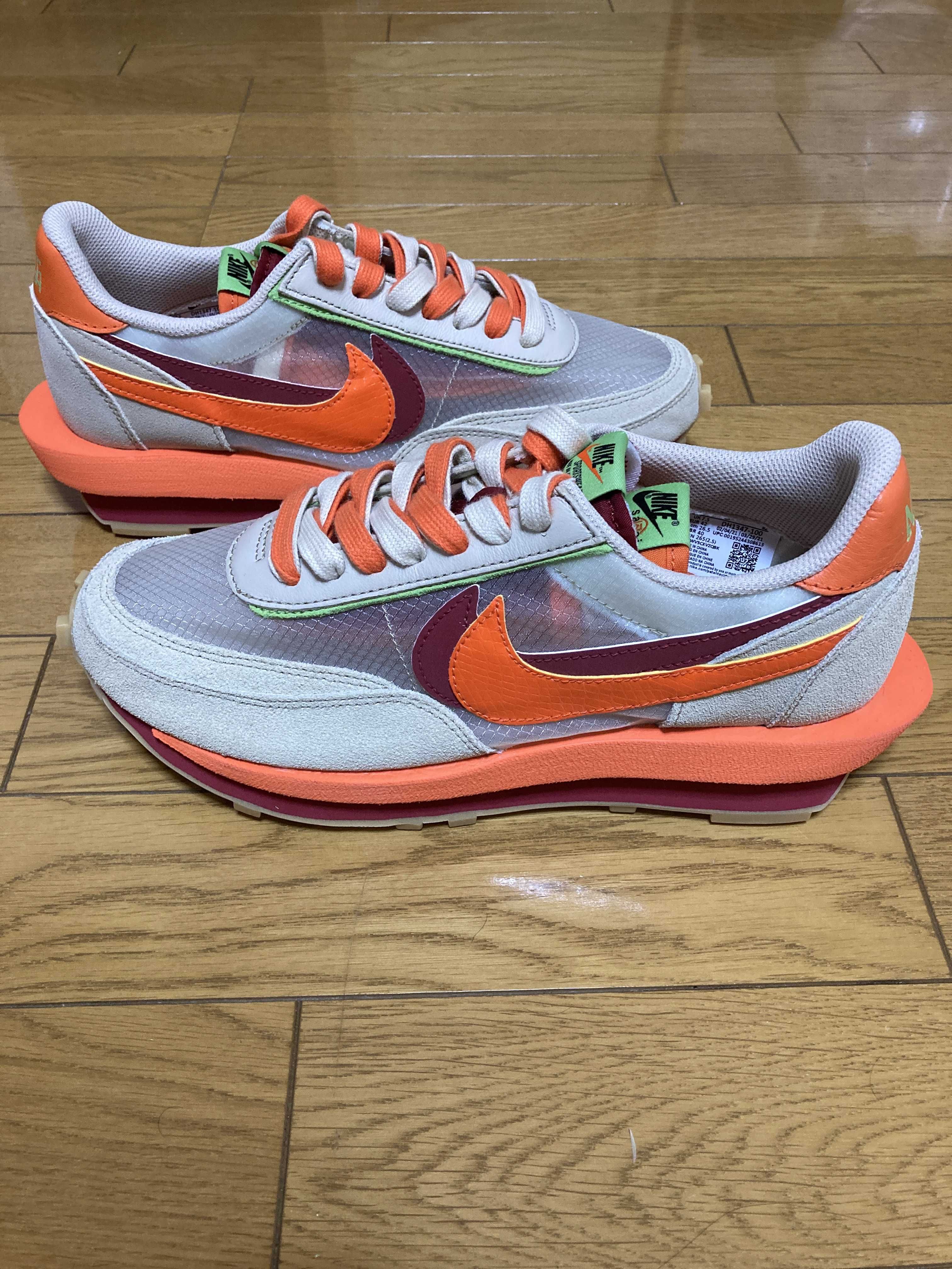 CLOT × Sacai × Nike LD Waffle "Orange Blaze"