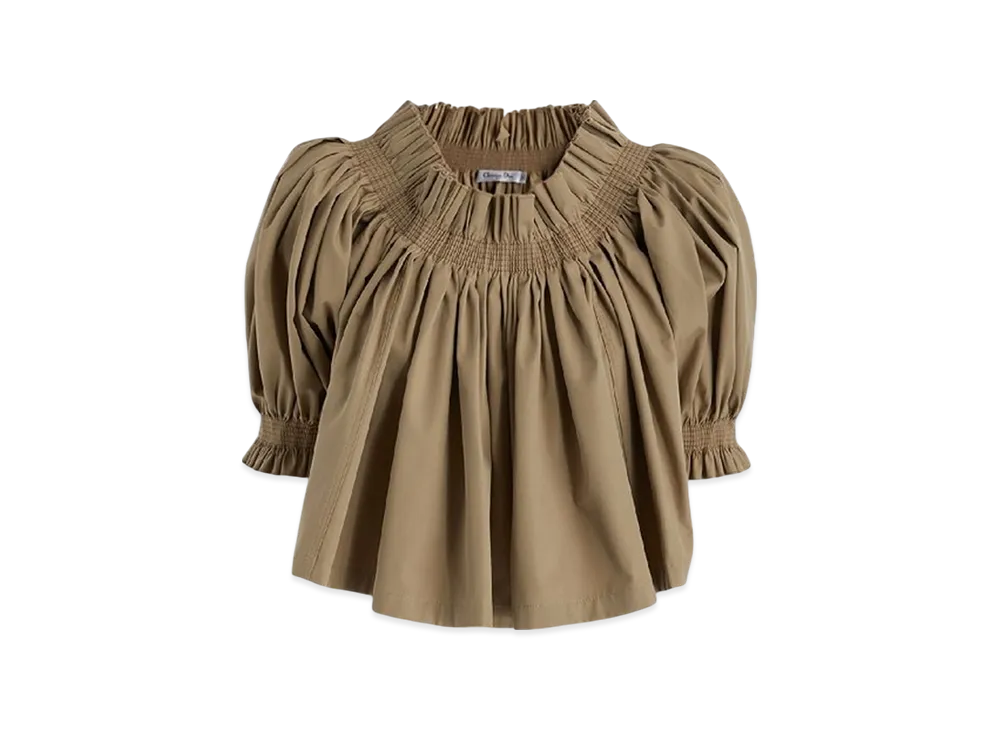 Dior Women's Gather Puff Shoulder Cotton Blouse "Beige"
