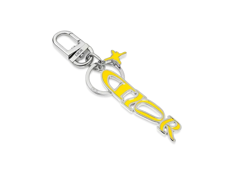 Dior x LEWIS HAMILTON Key Ring Palladium Finish Brass and Enamel "Yellow"