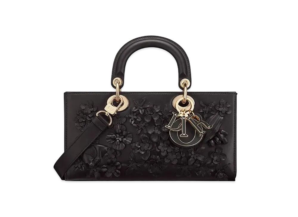 Dior Medium Lady D-Joy Bag 3D Flowers "Black"