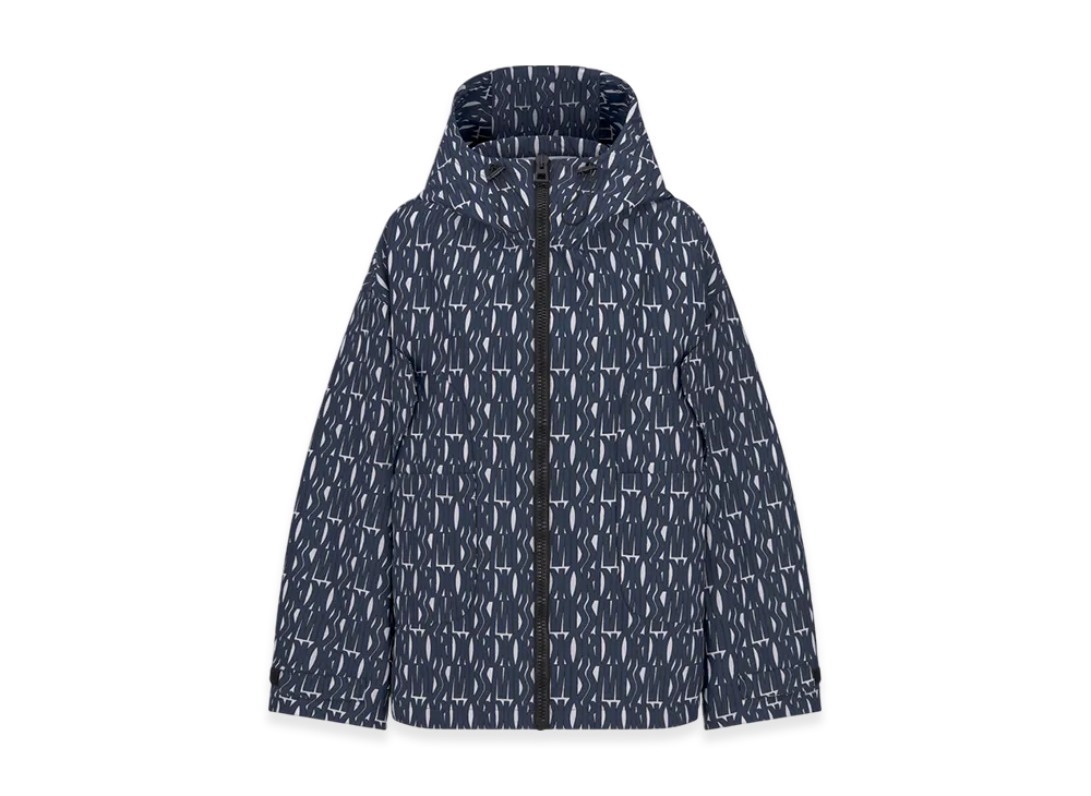 Dior Women's Technical Taffeta Jacquard with Miss Dior Allover Motif Waterproof Hooded Jacket "Navy Blue"
