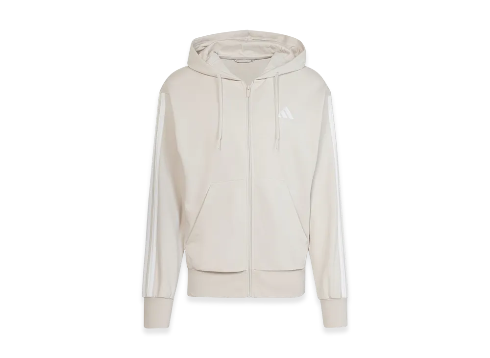 adidas Essentials Three Stripes French Terry Full-Zip Hoodie "Beige/White"