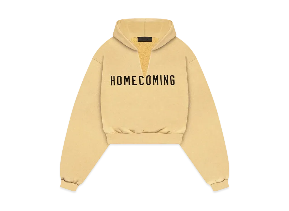 FEAR OF GOD Essentials Womens Heavy Fleece Cropped V-Neck Hoodie "Amber"