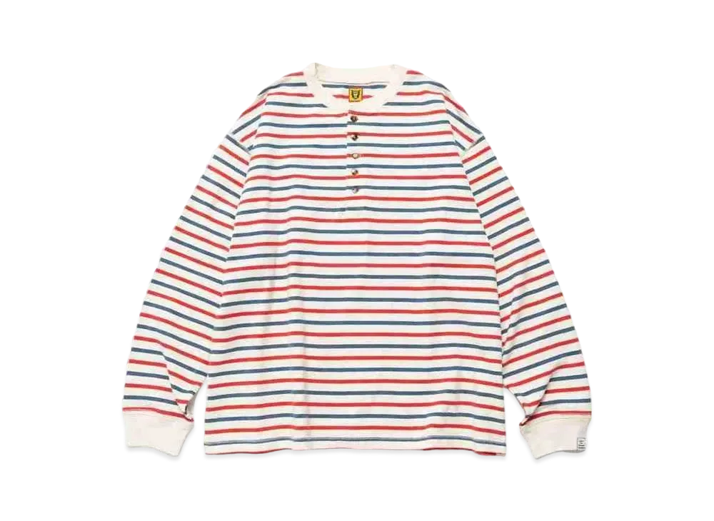 HUMAN MADE STRIPED HENLEY NECK L/S T-SHIRT "Navy"