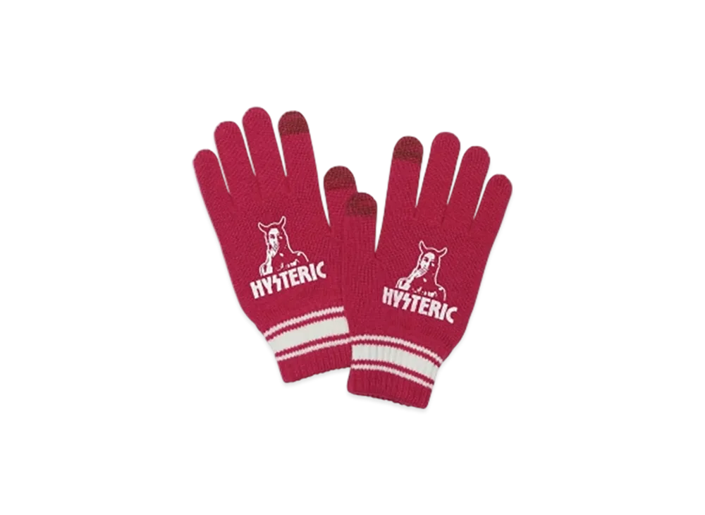HYSTERIC GLAMOUR Speak No Evil Knit Gloves "Pink"