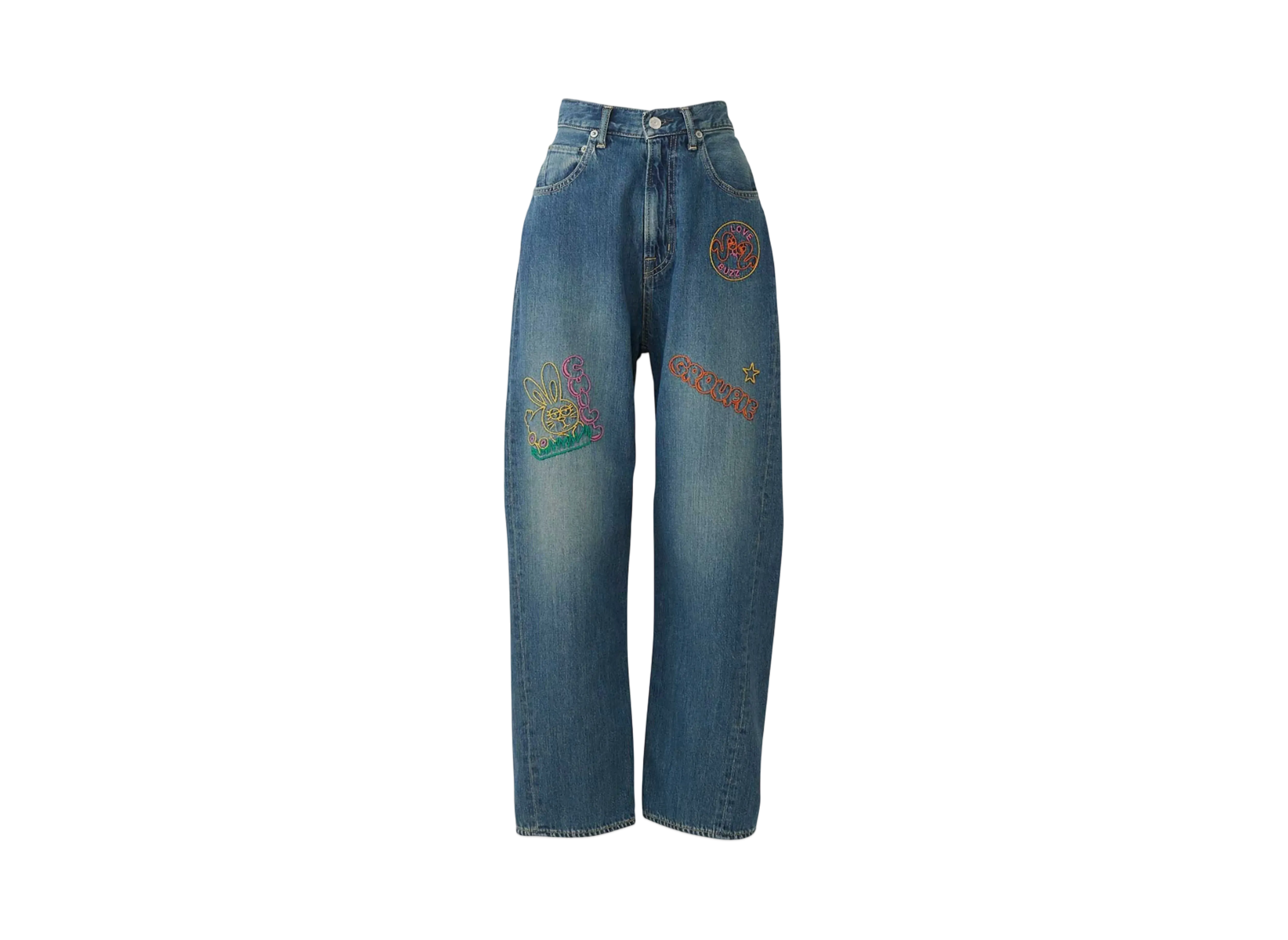 HYSTERIC GLAMOUR Hand-Stitched Embroidery Tapered Denim Pants "Light Indigo Blue"