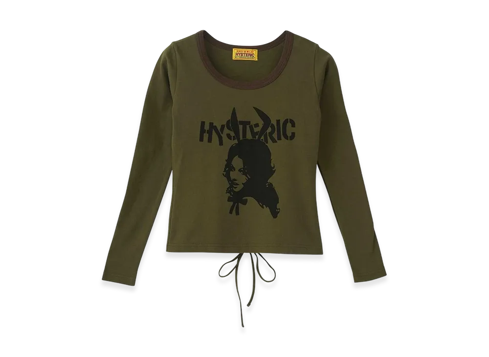 HYSTERIC GLAMOUR BUNNY GIRL Lace-up Chibi Tee "Khaki"