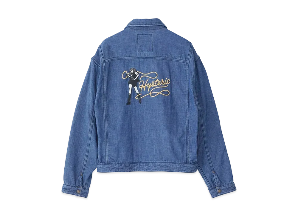 HYSTERIC GLAMOUR WHIPLASH Embroidery Pile Denim Jacket "Light Indigo Blue"