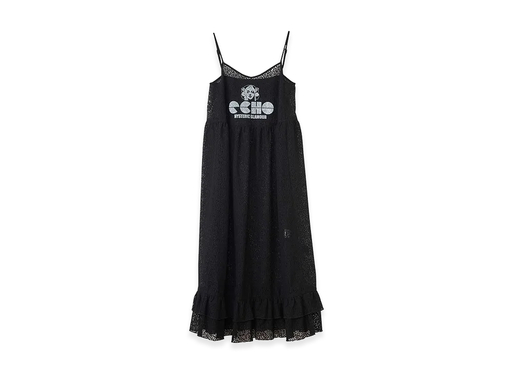 HYSTERIC GLAMOUR Women's Maiden Logo Pattern Tulle Jacquard Dress "Black Other"