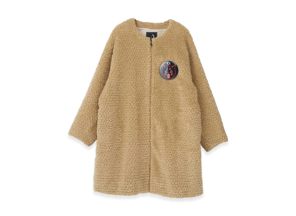 HYSTERIC GLAMOUR Black Cat Batch Eco Fur No Collar Coat "Beige"