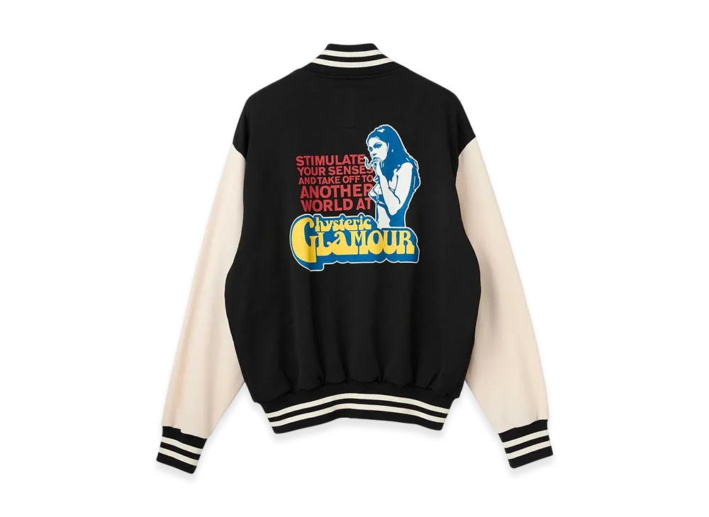 HYSTERIC GLAMOUR Smoking Girl Patch Varsity Jacket "Black"