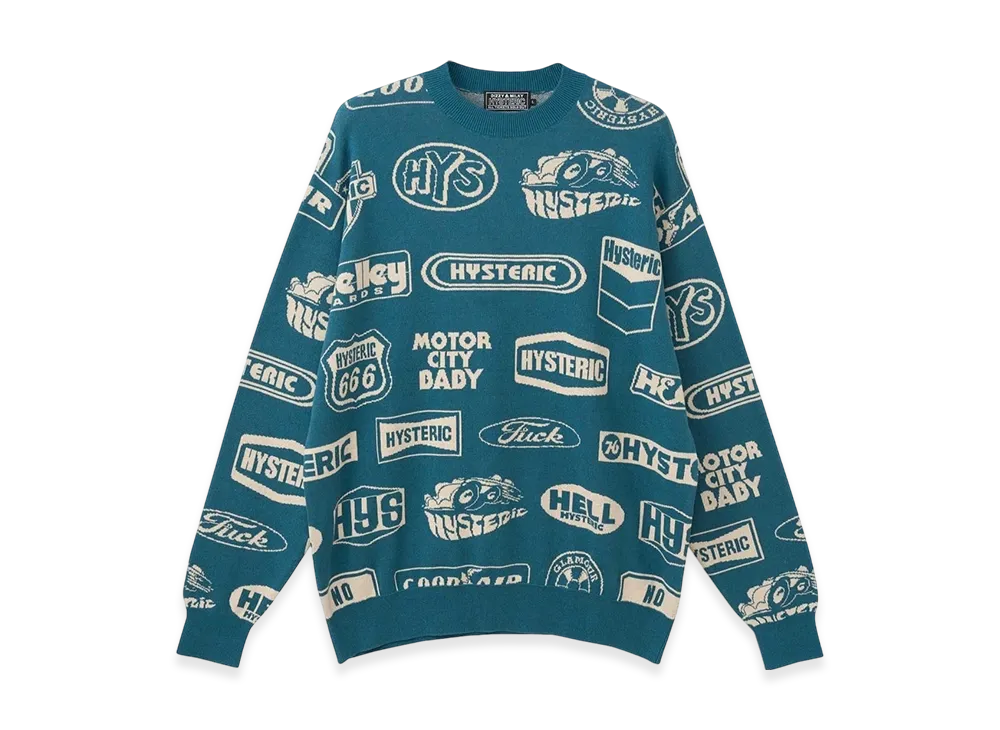 HYSTERIC GLAMOUR Classic Hys Pattern Sweater "Blue"