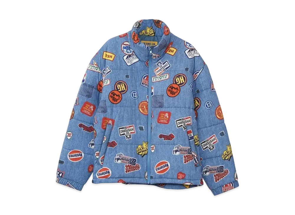 HYSTERIC GLAMOUR Patch Scratch Fever Pattern Stand Collar Jacket "Blue"