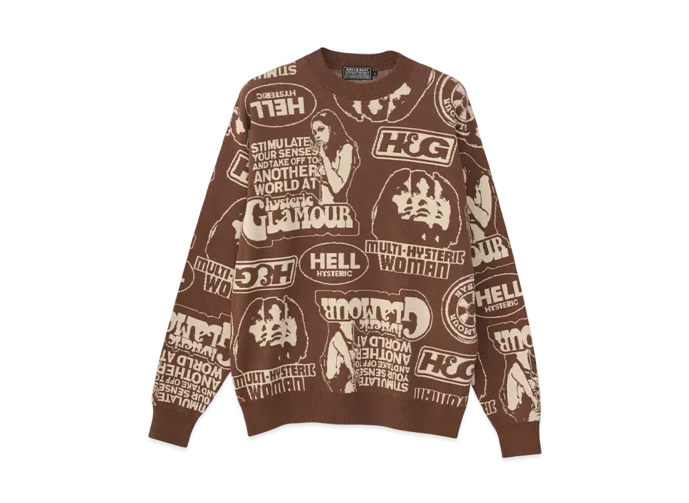 HYSTERIC GLAMOUR Super Hys Pattern Jacquard Sweater "Brown"