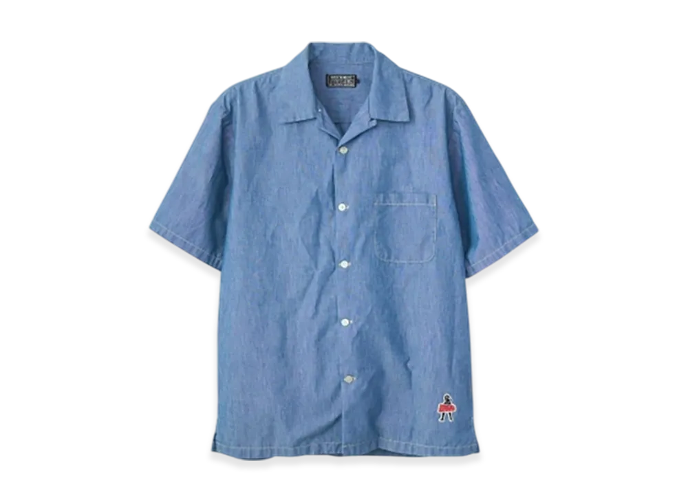 HYSTERIC GLAMOUR Vixen Girl Patch Open Collar Shirt "Blue"