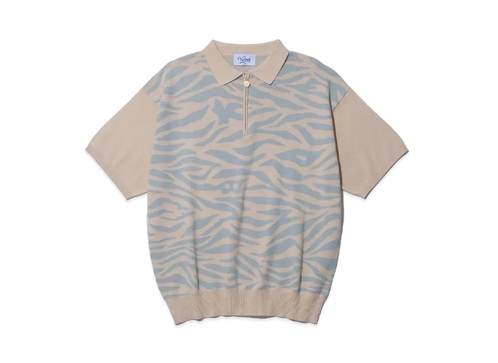 KEBOZ Zebra Knit S/S Polo "Beige/Mint"