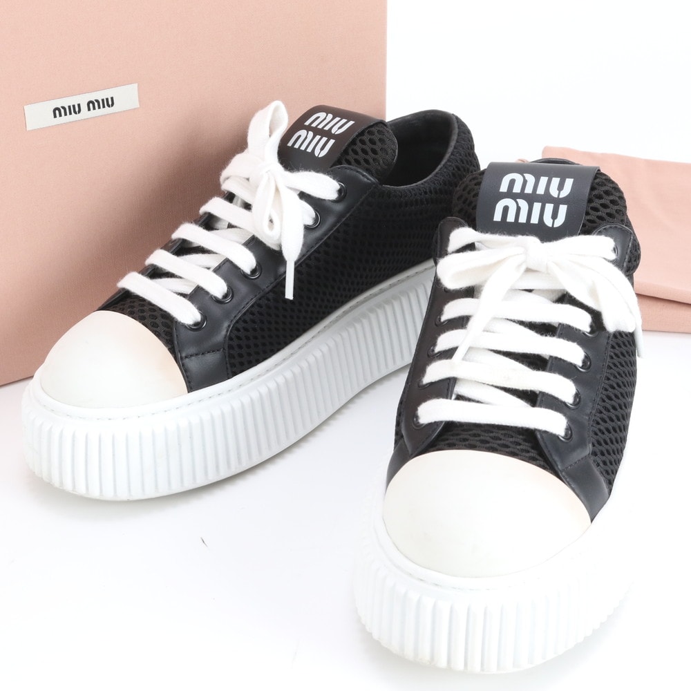 MIUMIU クリスタル ロートップ スニーカー ロゴ エンボス 5E907C