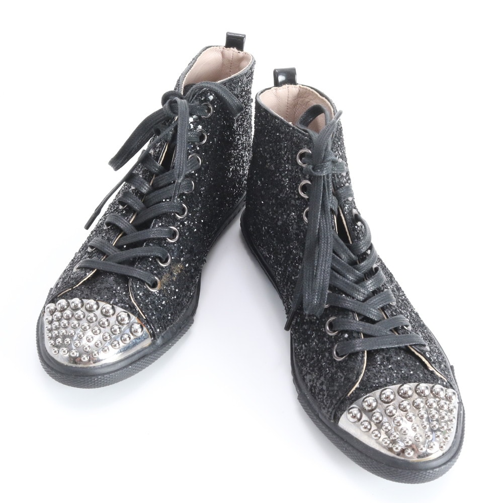■美品 ミュウミュウ スタッズ ラメ グリッター 35 5T8143