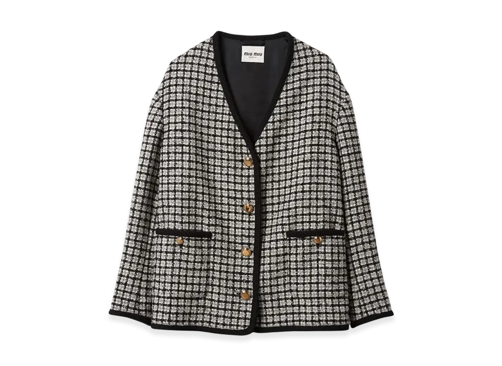MIU MIU Women's Single Breasted Boucle Jacket "White/Black"