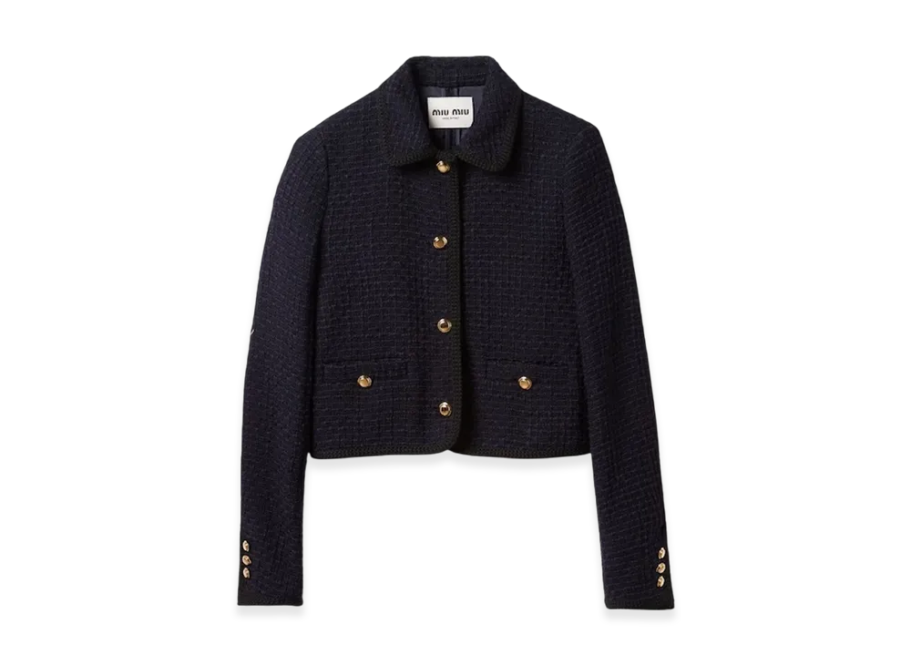 MIU MIU Women's Single Breasted Tweed Jacket "Navy"