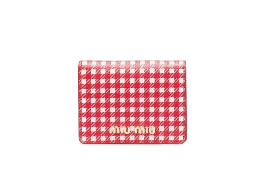 MIU MIU Small Printed Madras Leather Wallet "Red/White"