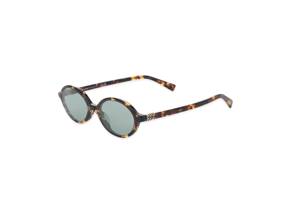 MIU MIU Miu Regard Oval Metal Logo "Honey Havana/Green"