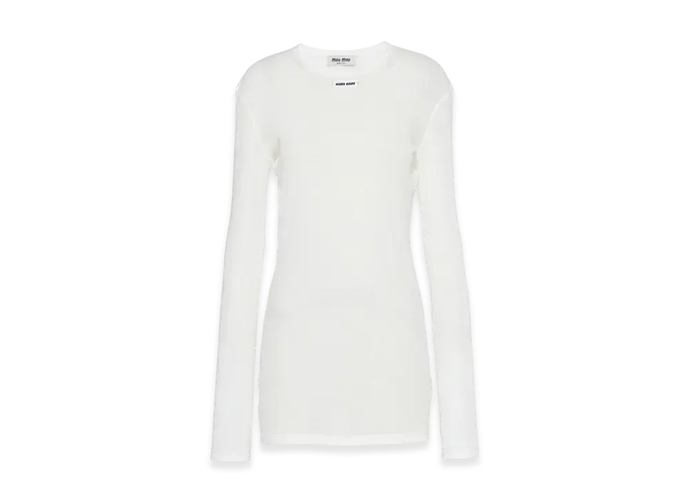 MIU MIU Women's Garment Dyed Ribbed Knit Jersey Long Sleeve T-Shirt "Pumice Stone"