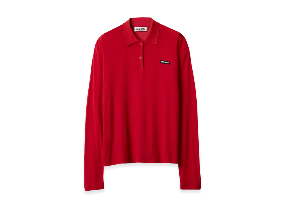 MIU MIU Women's Ribbed Jersey Polo Shirt "Red"