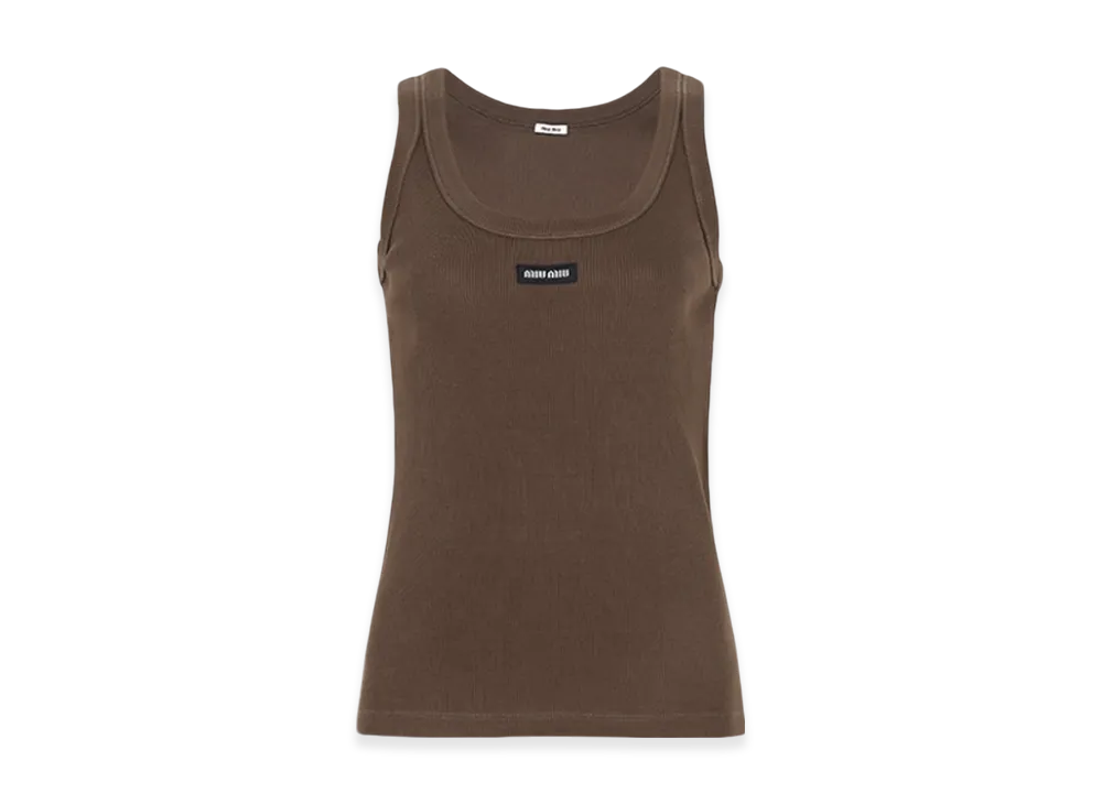 MIU MIU Women's Garment Dyed Ribbed Knit Jersey Top "Cocoa Brown"