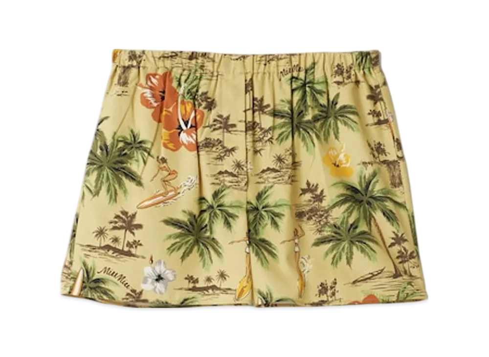MIU MIU Women's Printed Silk Boxers "Pistachio Green"