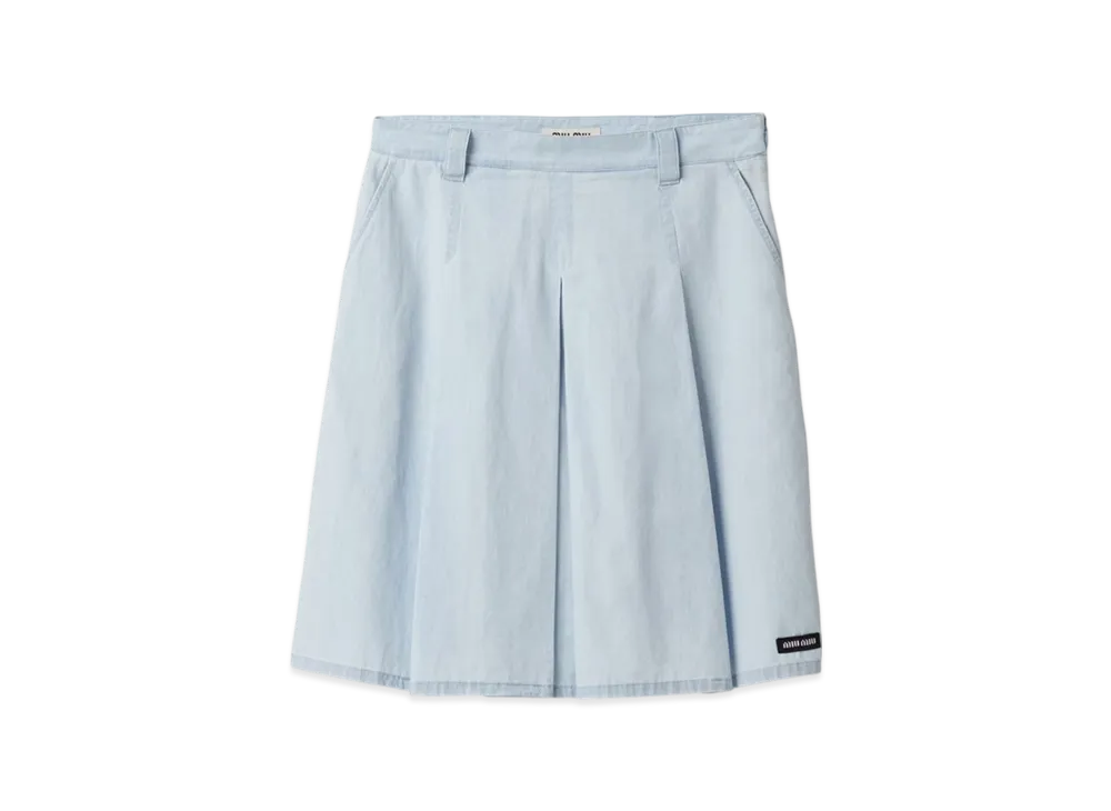 MIU MIU Women's Pleated Chambray Skirt "Light Blue"