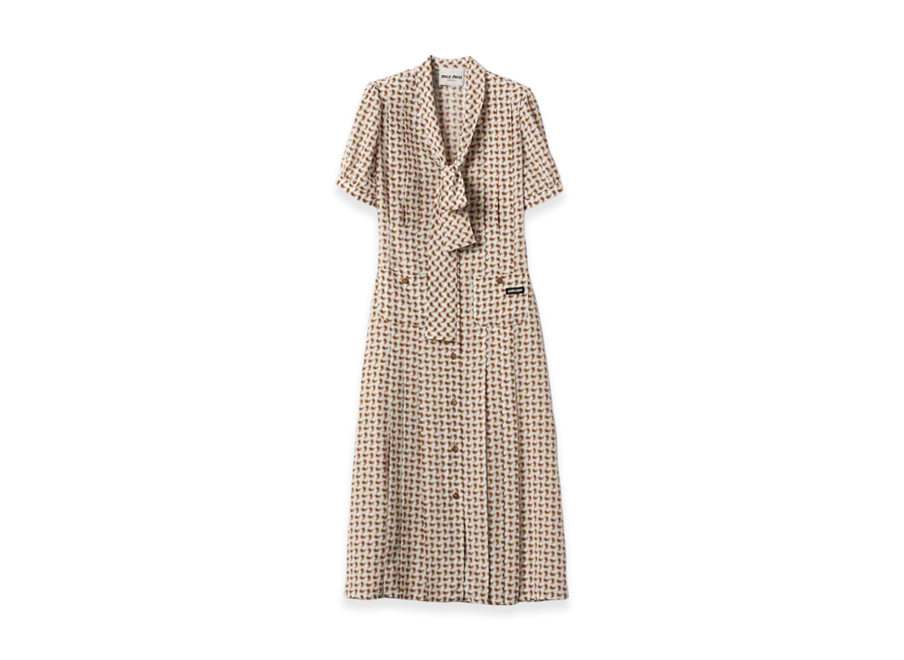 MIU MIU Women's Paisley Print Pleated Marocain Dress "Avory/Orange"
