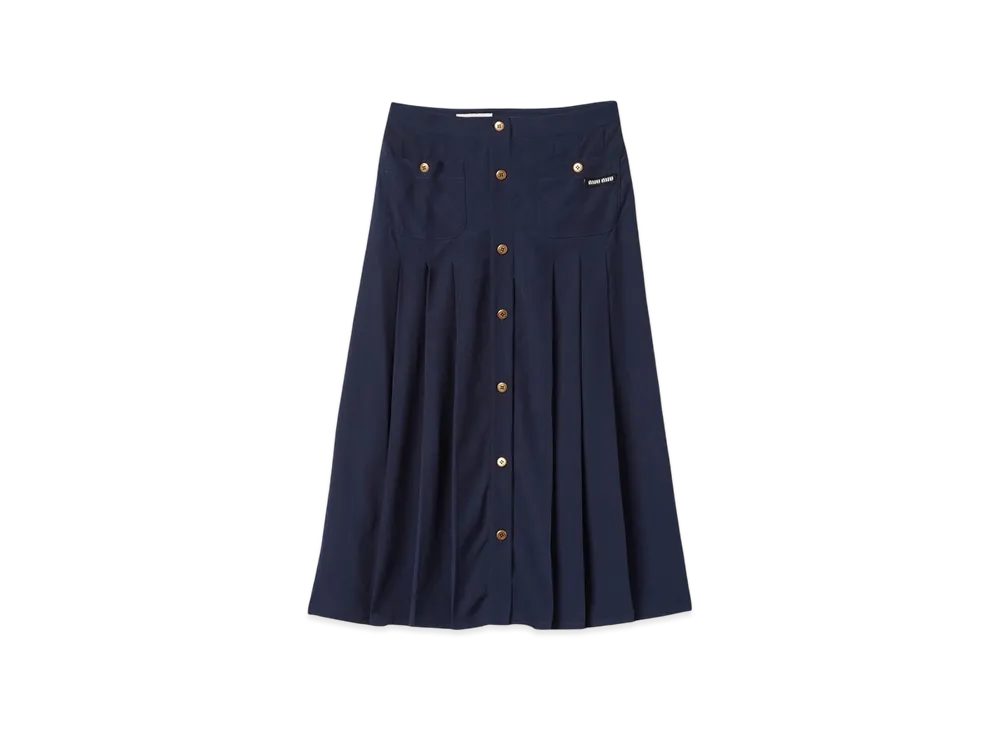 MIU MIU Women's Long Pleated Marocain Skirt "Navy"