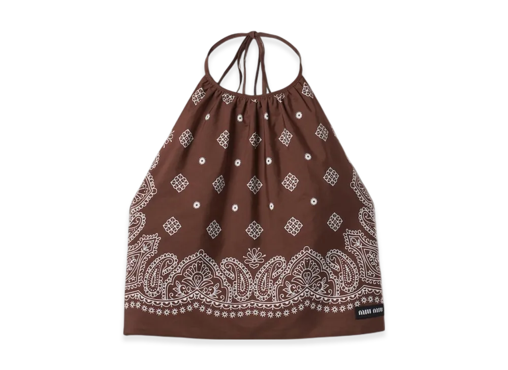MIU MIU Women's Poplin Halter Top "Cocoa Brown"