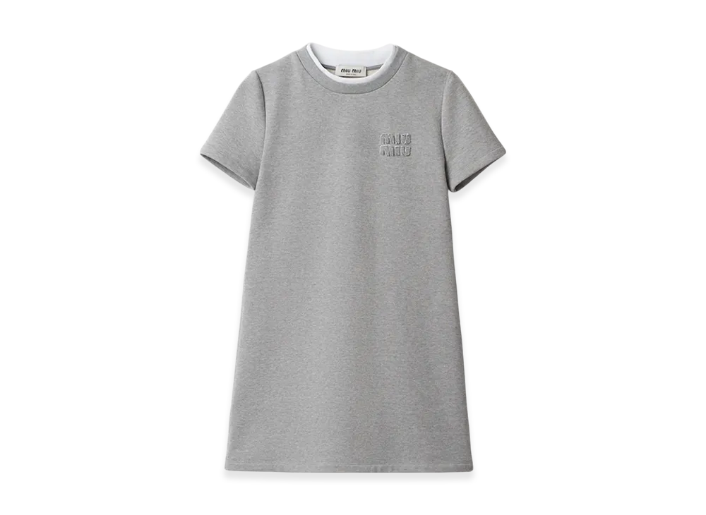MIU MIU Women's Embroidered Cotton Fleece Dress "Grey"