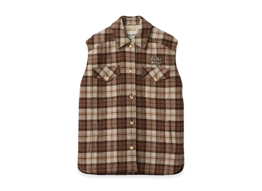 MIU MIU Women's Check Blouson Vest "Cocoa Brown"