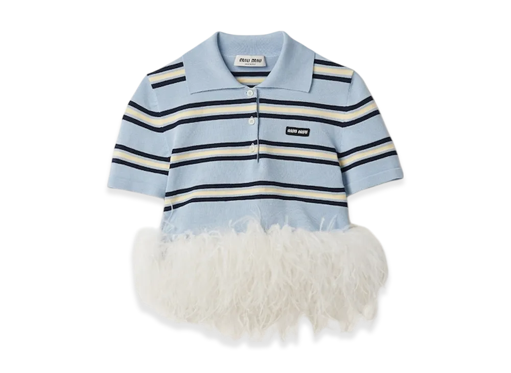 MIU MIU Women's Silk and Cotton Knit Polo Shirt "Light Blue"