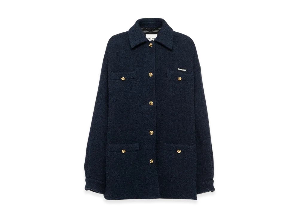 MIU MIU Women's Boucle Blouson Jacket "Blue"