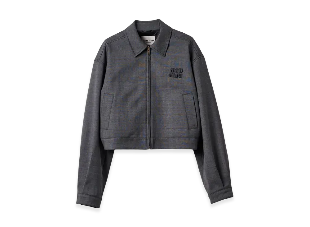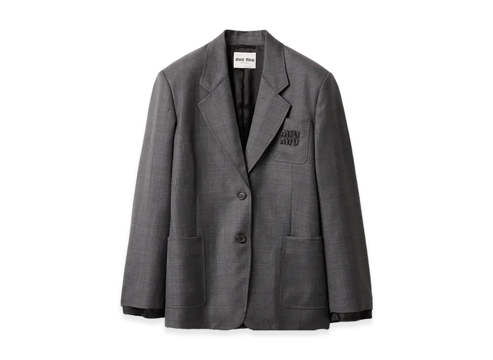 MIU MIU Prince of Wales Check Blouson Jacket "Slate Grey"