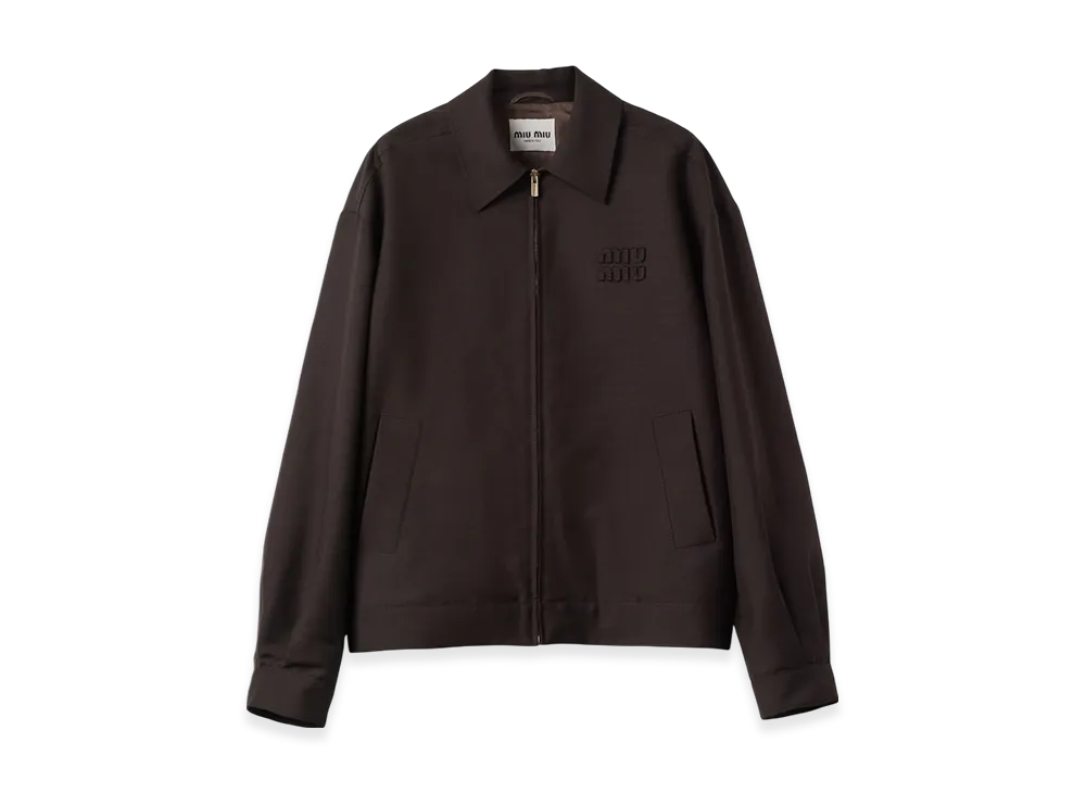 MIU MIU Garment-Dyed Blouson Jacket Embroidered Logo "Olive Green"