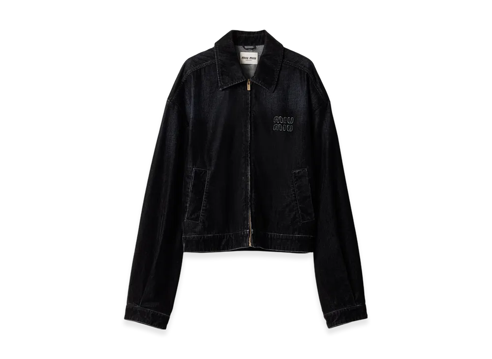 MIU MIU Flocked Chambray Blouson Jacket "Black"