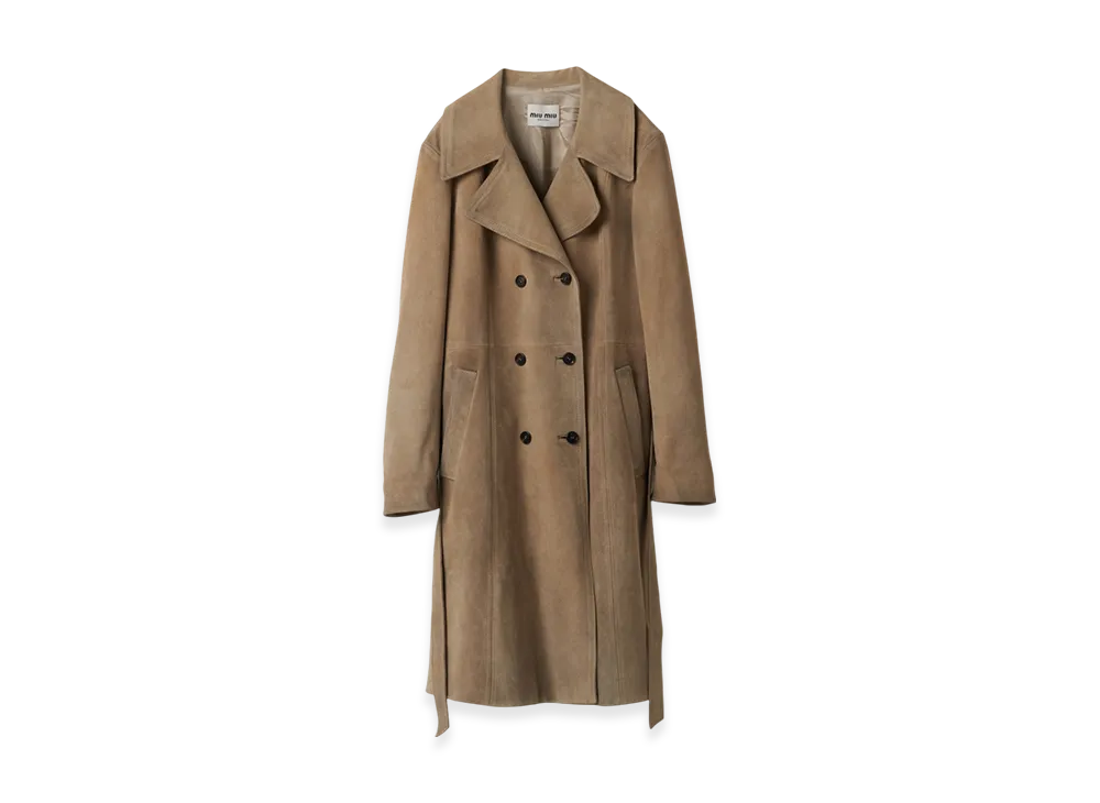 MIU MIU Double-Breasted Suede Coat "Ice"