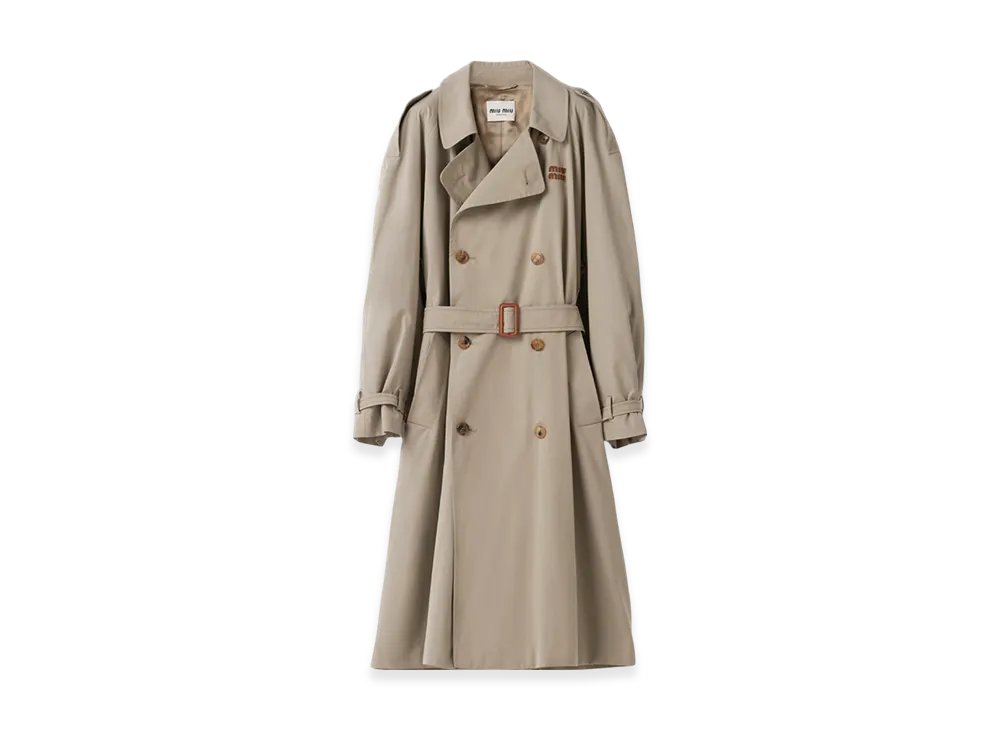 MIU MIU Double-Breasted Panama Cotton Trench Coat "Clay Grey"
