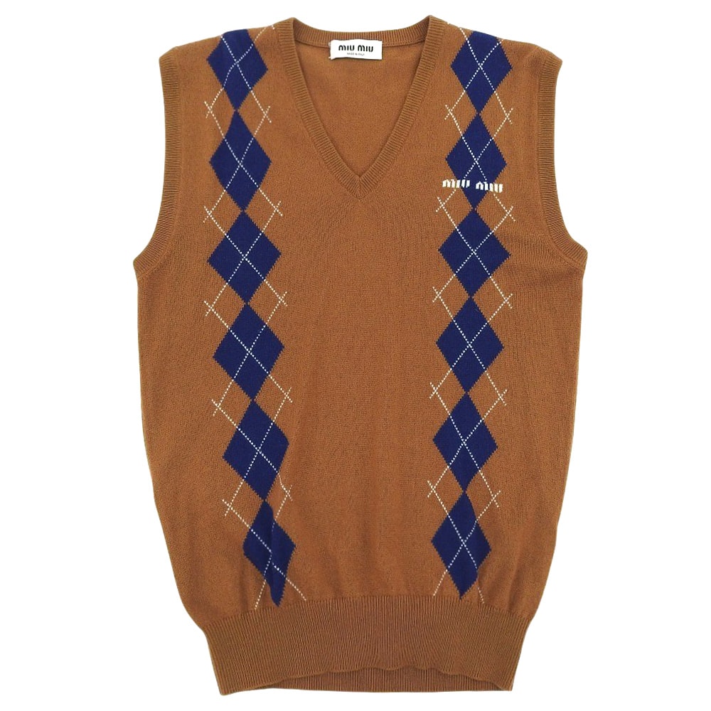 ミュウミュウ 美品 カシミヤ ニット ベスト レディース ブラウン 36 MMV042 22年製 36