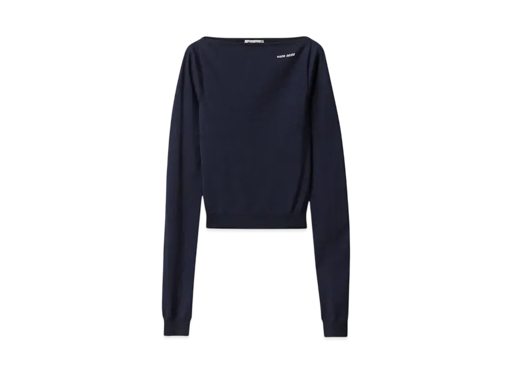 MIUMIU Women's Wool Boat-Neck Sweater "Navy"