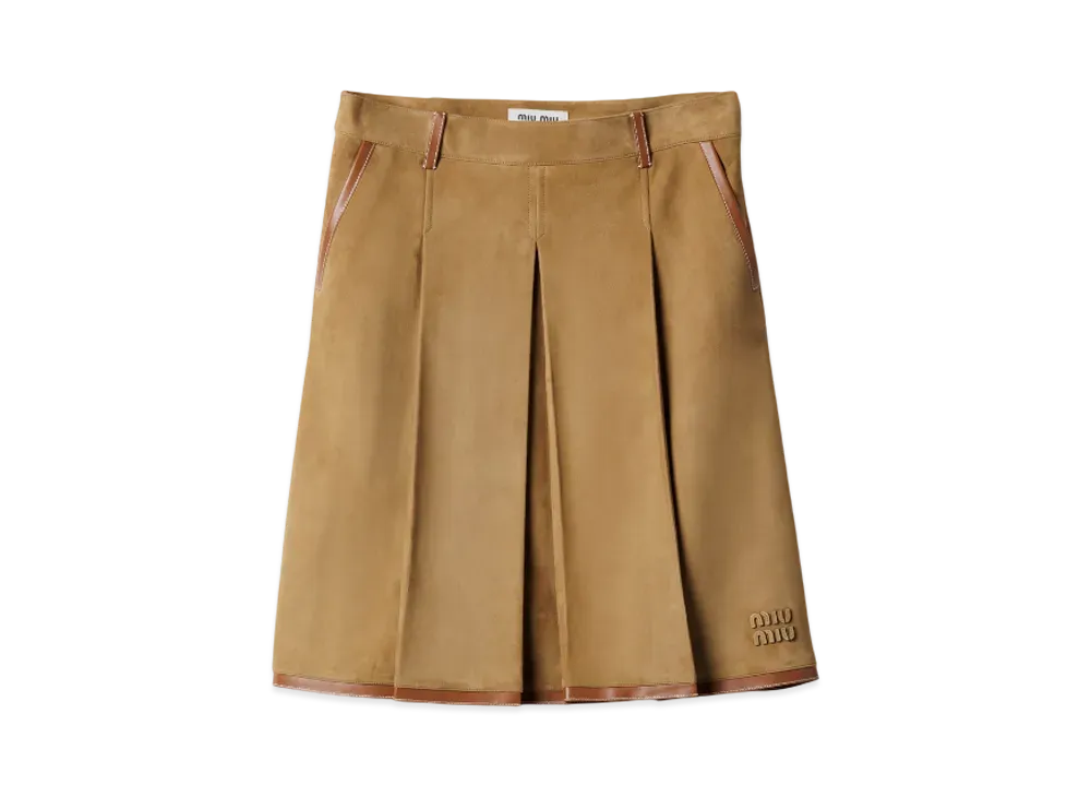 MIUMIU Women's Pleated Suede Skirt "Light Brown"