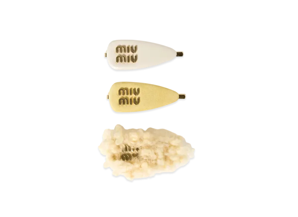 MIUMIU Set Of Leather Suede and Shearling Hair Clips "Ivory"